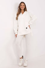 Unit price / perThis women’s 3-piece set blends comfort and style for everyday or sporty outfits. The long blouse features a cozy cotton-polyester blend, a roomy hood, V-neck, kangaroo pocket, and a stylish patch. The cropped top in cotton-elastane flatters the figure and pairs perfectly with the high-waisted, ribbed leggings, ensuring freedom of movement and a trendy fit. The smooth pattern creates a cohesive, modern look—ideal for walks, workouts, or relaxing at home.